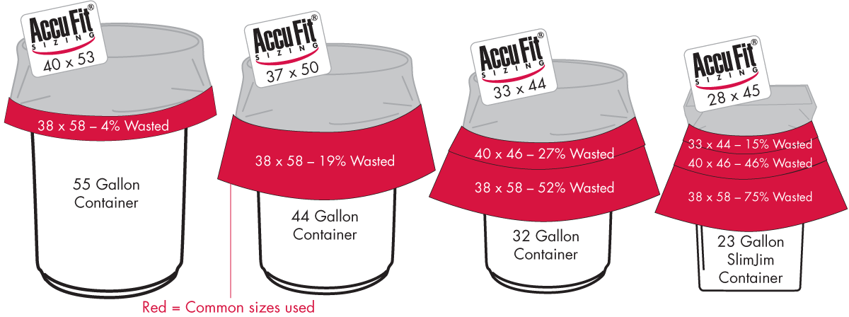 • Because Accufit also utilized sizes for common receptacles, your staff will be more productive re bagging.