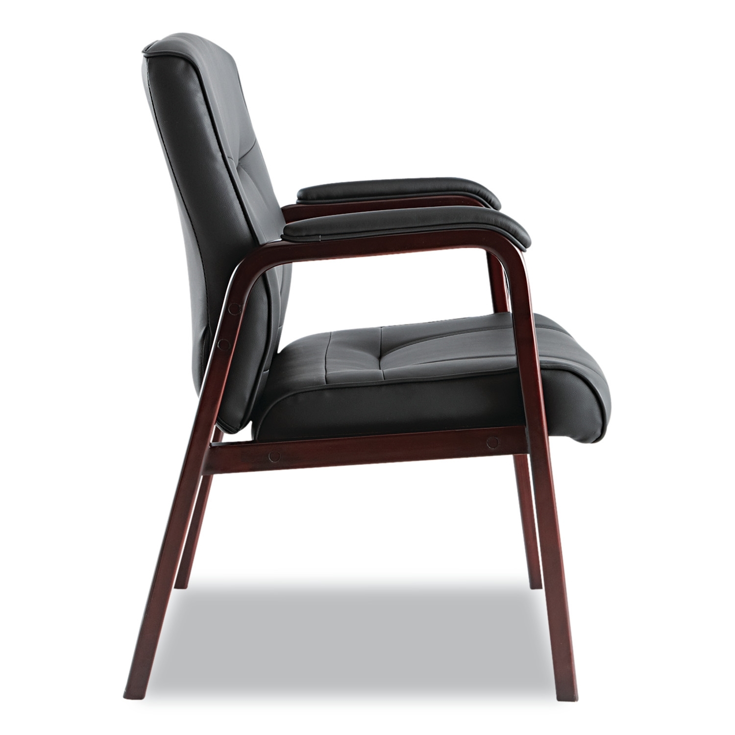 Guest Chair, Leather, Alera Madaris Series, w/Wood Trim, Four Legs, Black/Mahogany