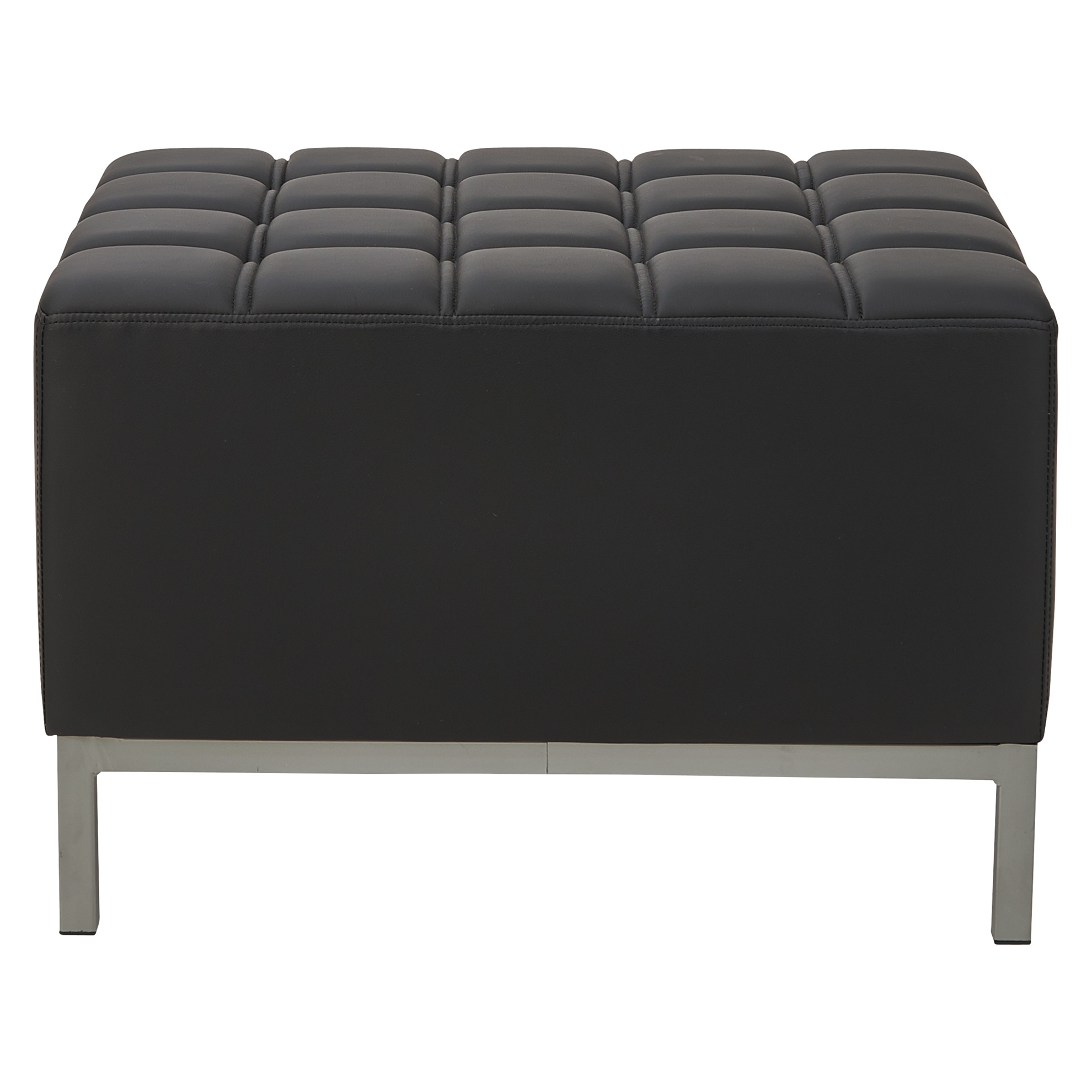 Contemporary geometric reception room sectional set can be configured in endless possibilities. Tufted seat design for a modern yet comfortable look. Ottoman can be configured with corner and armless sectional. Can be placed to create two-sided seating with armless sectional when placed back-to-back. Silver steel frames and legs adds style. Color: Black; Overall Width: 26 3/8"; Overall Depth: 21 1/2"; Overall Height: 17 1/2".