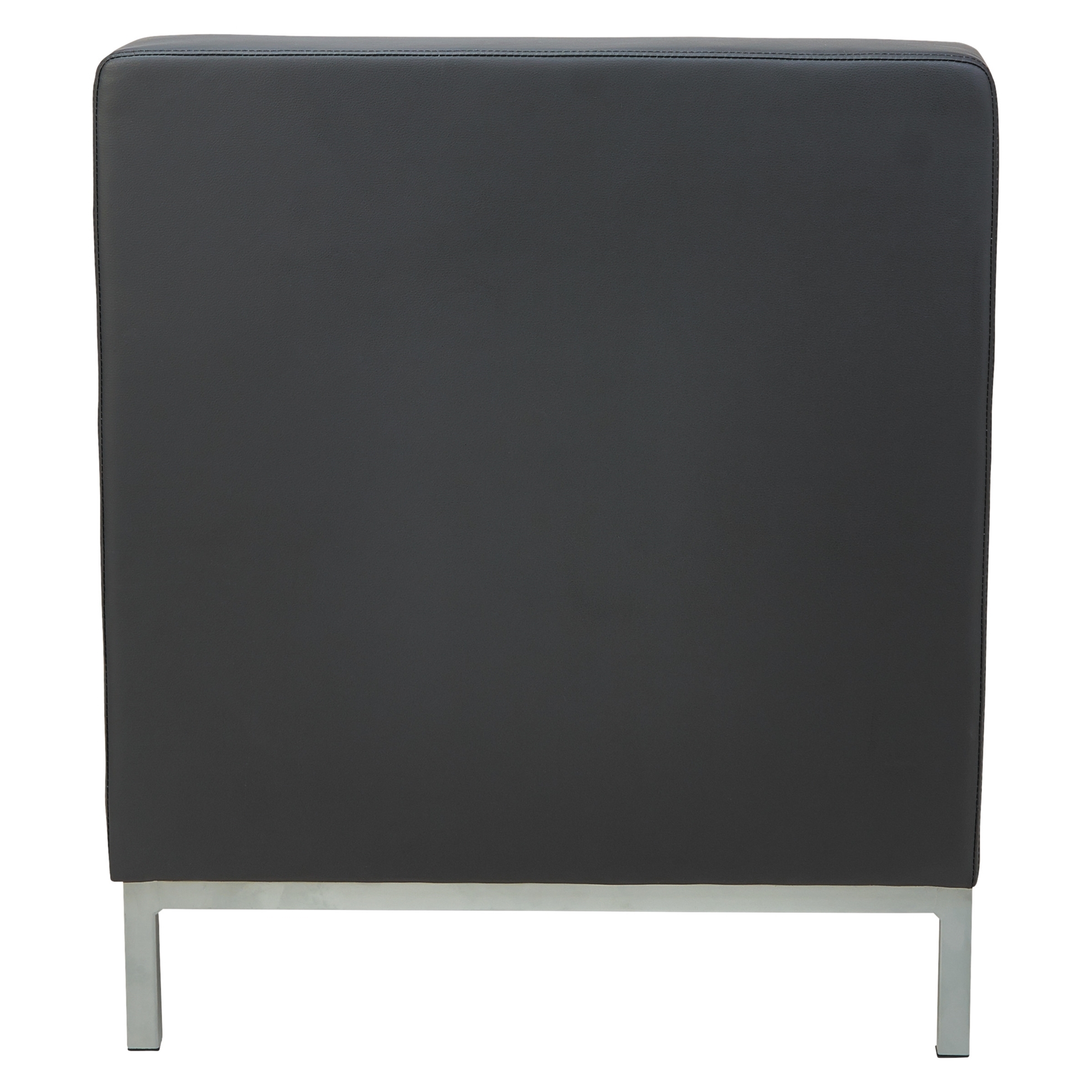 Contemporary geometric reception room sectional set can be configured in endless possibilities. Tufted seat design with straight backs and arms for a modern yet comfortable look. Armless sectional can be configured with corner sectional and ottoman. Silver steel frames and legs adds style. Offers guest the chance to get plugged in and charge electronics. Includes electrical outlet and 2 USB ports. Color: Black; Overall Width: 26 3/8"; Overall Depth: 26 3/8"; Overall Height: 30 1/2".