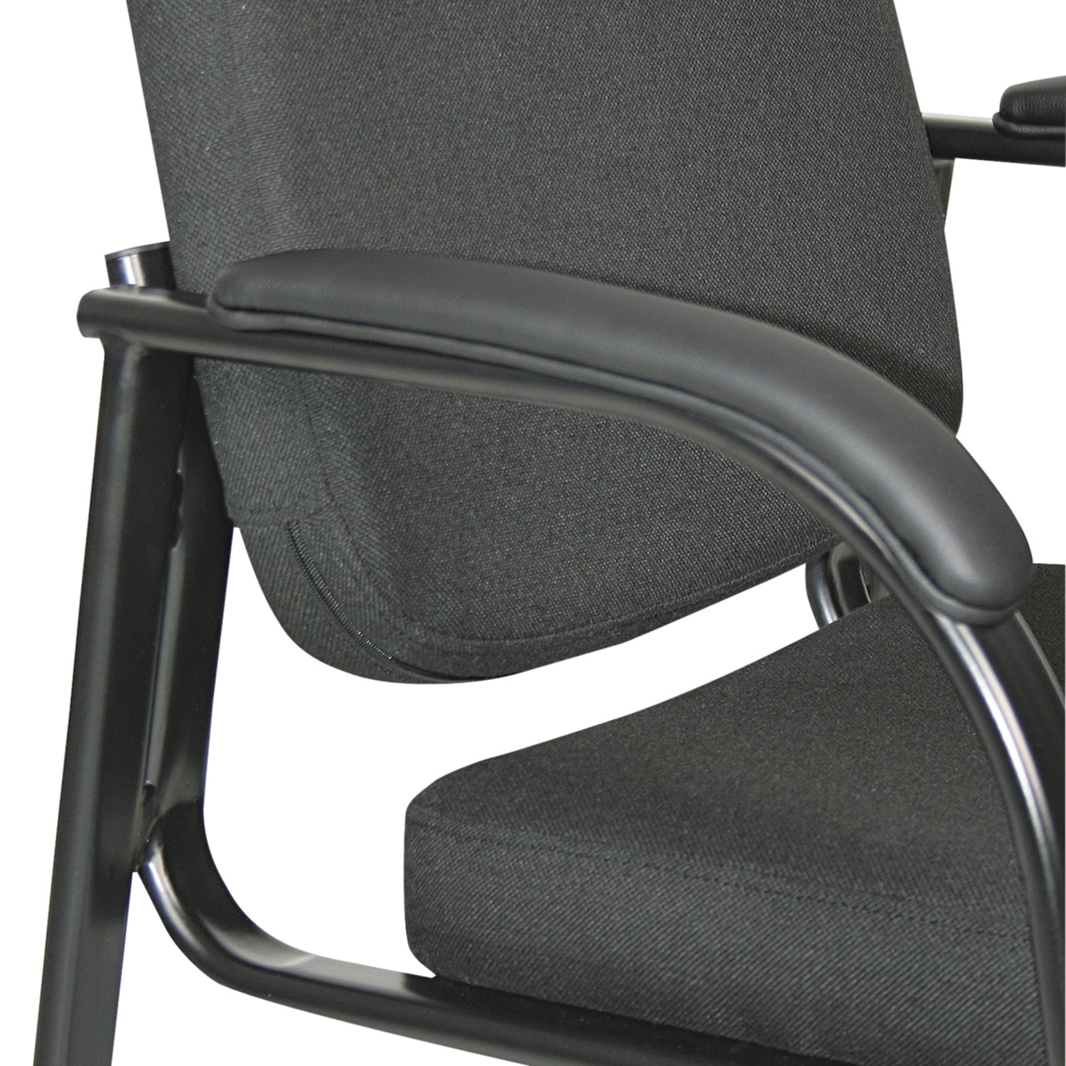 Clean, classic lines complement any office environment. Configure to create reception, lounge, conference, and waiting rooms. Thickly padded for maximum comfort. Durable upholstery withstands everyday use. Padded armrests for soft support. Sturdy steel sled base. Recommended Applications: Guest, Reception, Waiting Room & Lounge; Seat/Back Color: Black; Arms Included: Yes; Arm Style: Padded Arch.