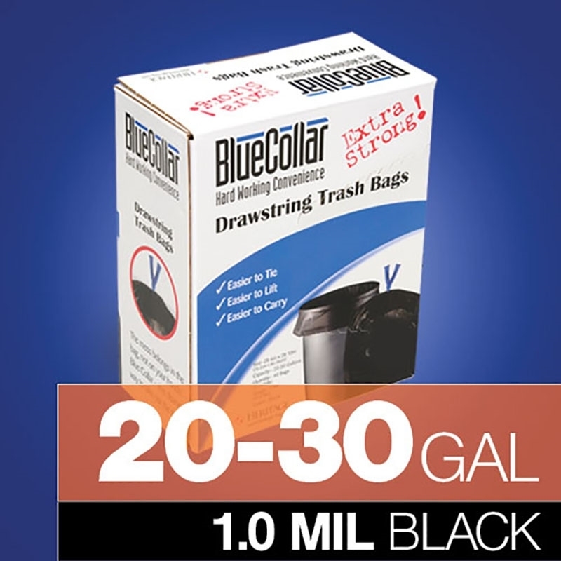 Trash Bags, Can liner, Drawstring , BlueCollar Heritage, 20-30gal, 1mil, 30 X 34, Black, 40/box, 6 Boxes/carton