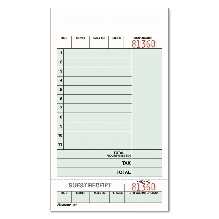 Adams®, Guest Check Unit Set, Carbonless Duplicate, 7 1/4 x 4 1/4, 250/Pack (ABF947SWC)