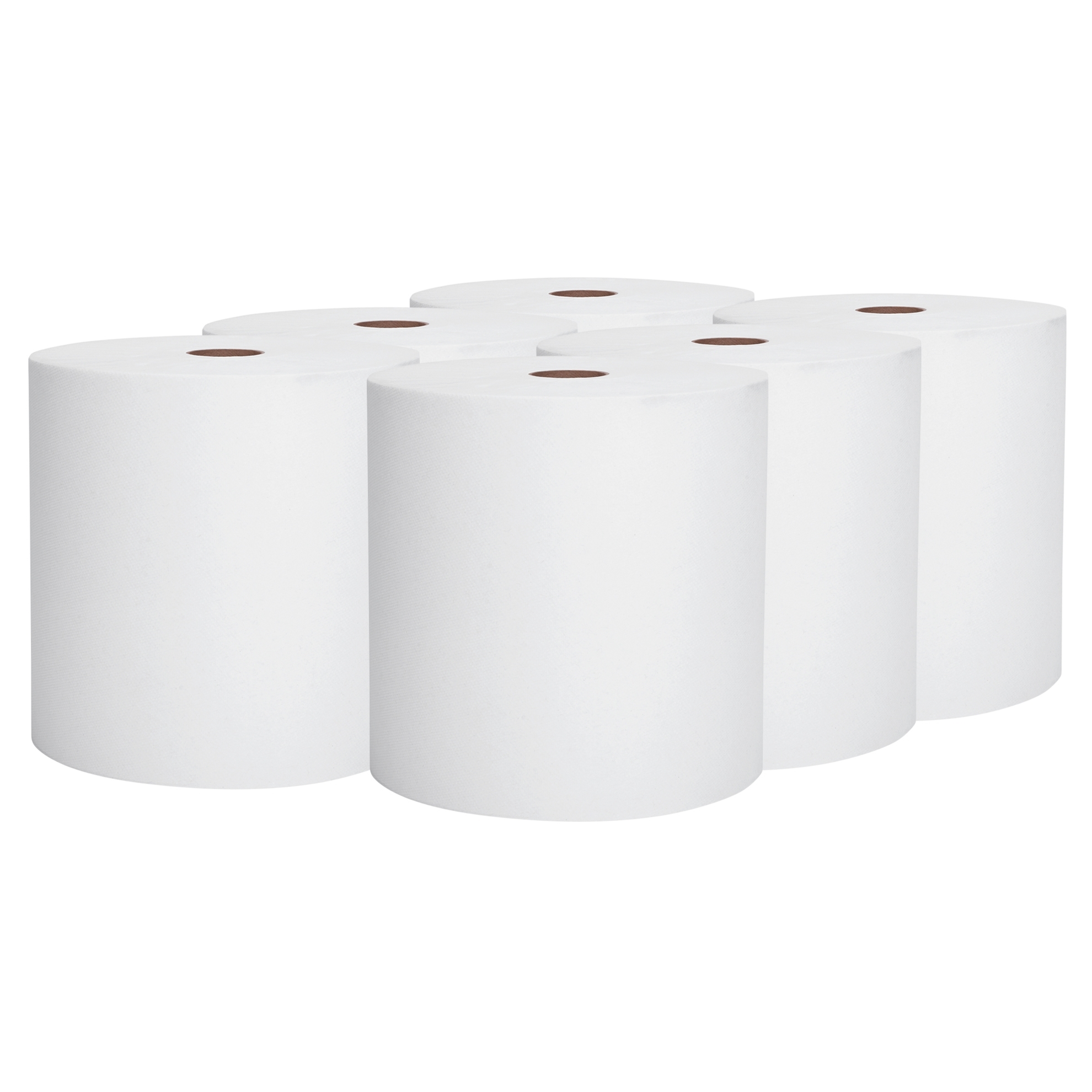 Scott Essential provides reliable balance of efficiency, performance and value. Reduce maintenance time, run-outs and complaints with Scott Essential Hard Roll Paper Towels. The roll has a core size of 1.75" and is compatible with a variety of Kimberly-Clark Professional dispensers. Plus, measuring 8 inches wide x 950 feet long, the big rolls are designed to last, even in your busy restroom or break room. These absorbent recycled paper towels are designed for efficient general-purpose cleaning and drying, so your employees and guests may use less, saving you money.