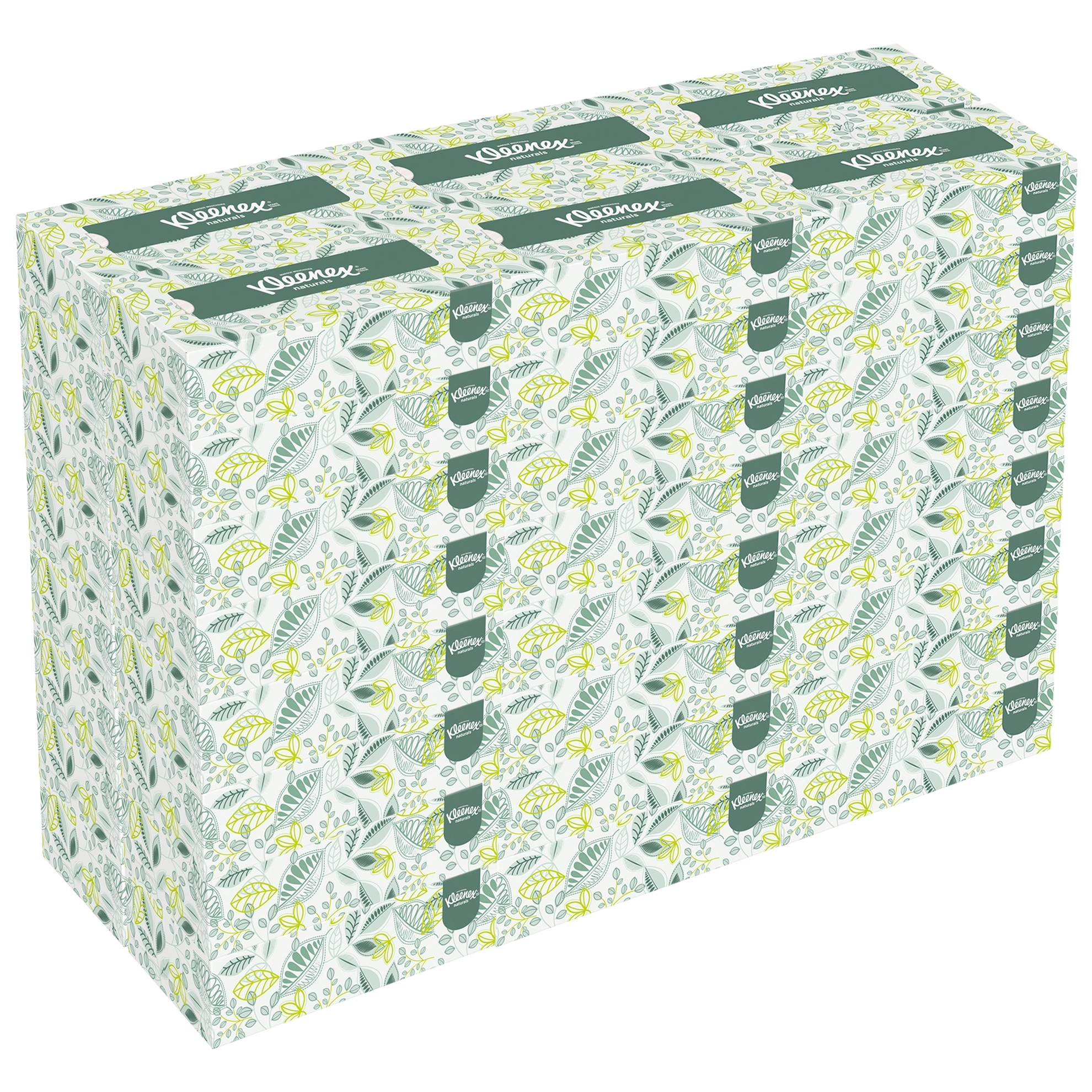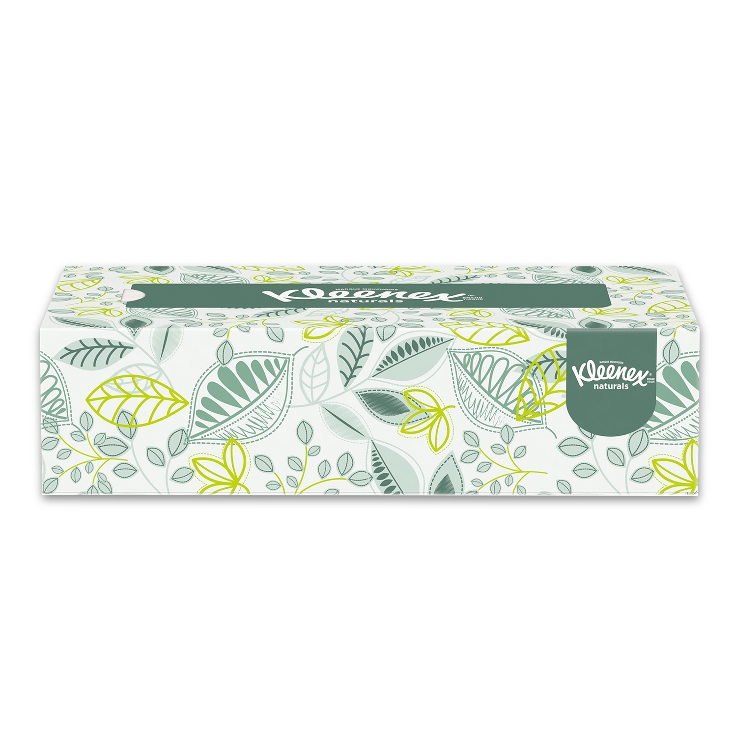 Offer premium care for face and hands with this Kleenex Naturals flat box facial tissue.