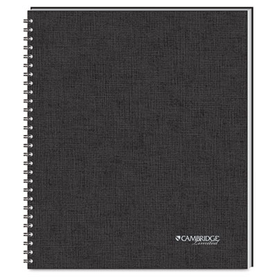 Foil-stamped black linen cover with black twin-wire binding. 20-lb. premium white paper. Perforated sheets for clean page removal. Formatted for convenient organization. Highlighted areas for attendees, notes, objectives and actions. Pad Type: Notebook; Sheet Size: 8 1/4" x 11"; Ruling: Meeting Notes; Number of Sheets per Pad: 80.