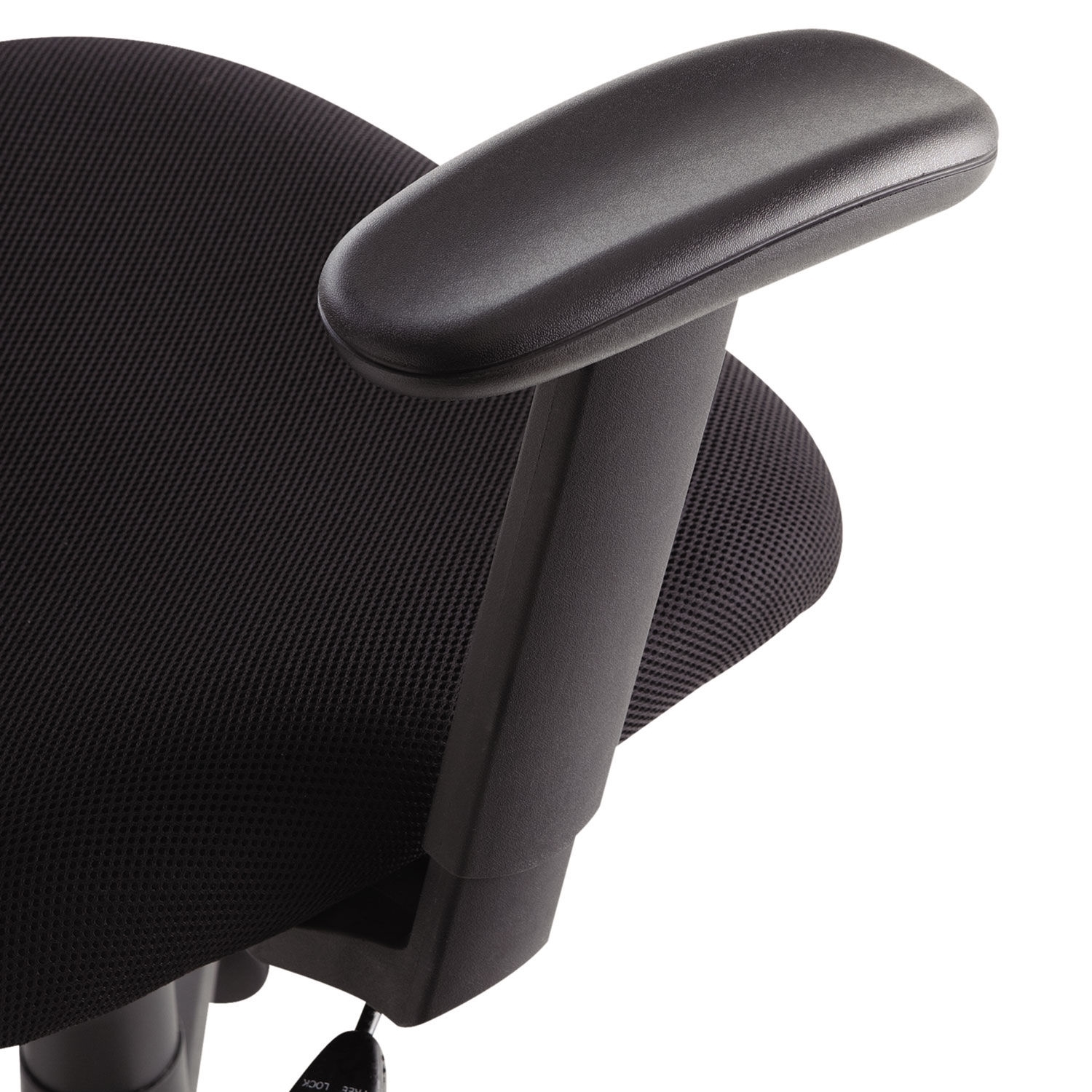 The economical choice for an everyday task chair. Cushioned mesh seat for all-day support. Ergonomic curved mesh back provides breathable comfort. Height adjustable padded arms for optimal arm placement. Recommended Applications: General Office & Task; Seat/Back Color: Black; Arms Included: Yes; Arm Style: T-Bar.