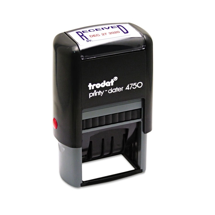 The quick and easy way to stamp documents with the date. Self-inking dater delivers rapid, repeat impressions. Replaceable stamp pad delivers up to 10,000 impressions. Four-band date: months, days and 10 years. Date band cover ensures fingers remain clean. Stamp Type: Dater; Message(s): DATE; RECEIVED; Ink Types: Self-Inking; Impression Width: 1 5/8".