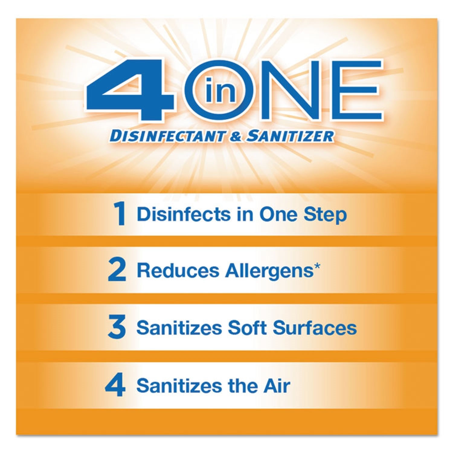 Disinfects hard surfaces with 24 EPA-registered kill claims. Sanitizes soft surfaces in just 30 seconds and sanitizes the air, killing odor-causing airborne bacteria. Reduces pet dander, dust mite matter and cockroach matter allergens which can trigger allergies and asthma. No precleaning required. Ideal for use in office break rooms, day care centers, schools and other commercial facilities. Application: Disinfectant/Sanitizer; Applicable Material: Air; Carpet; Cement/Concrete; Ceramics; Enamel; Fabric; Fiberglass; Glass; Grout; Laminates; Metal; Plastic; Vinyl; Wood; Dirt Types: Bacteria; Fungus; Germs; Mildew; Mold; Odors; Scent: Citrus.