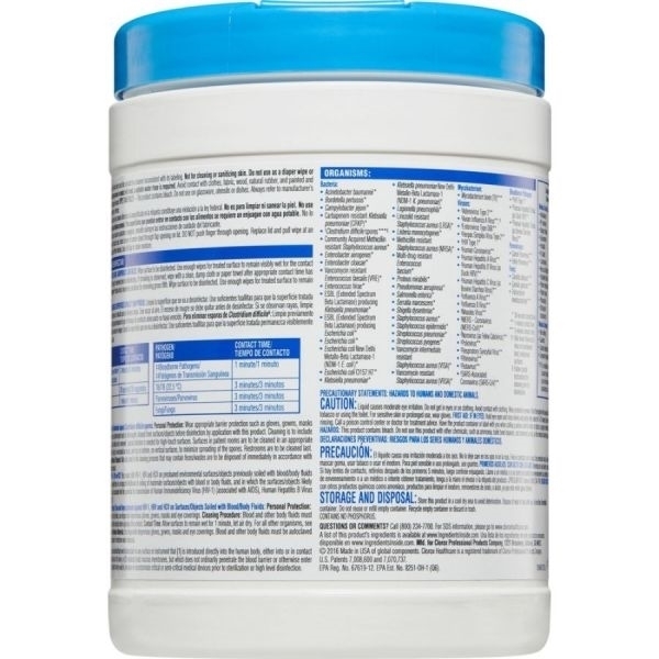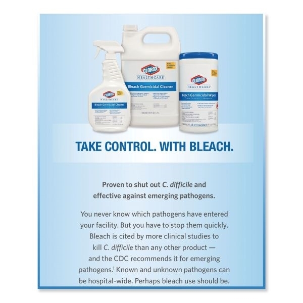 One-step, ready-to-use disinfectants with a 1:10 bleach dilution. EPA-registered to kill a total of 51 microorganisms, including all ESKAPE pathogens in 30 seconds, Norovirus in one minute and TB and C. difficile in three minutes. Hospital-grade disinfectant wipes kill C. difficile spores. Tested for surface safety on common healthcare surfaces and equipment, the wipes feature an anticorrosion agent to ensure compatibility with hospital-grade surfaces. Towel/Wipe Type: Disinfecting Wipes; Application: Hospitals; Nursing Homes; Medical Facilities; Applicable Material: Acrylic; Ceramic; Chrome; Fiberglass; Glass; Metal; Plastic; Tile; Vinyl; Wood; Material(s): Non-Woven Fiber.