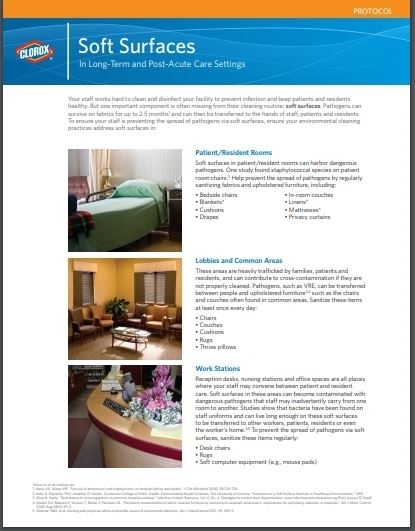 • You can also disinfect hard, nonporous surfaces in 5 minutes, and inhibit the growth of mold and mildew on privacy curtains, upholstered furniture and other soft surfaces.