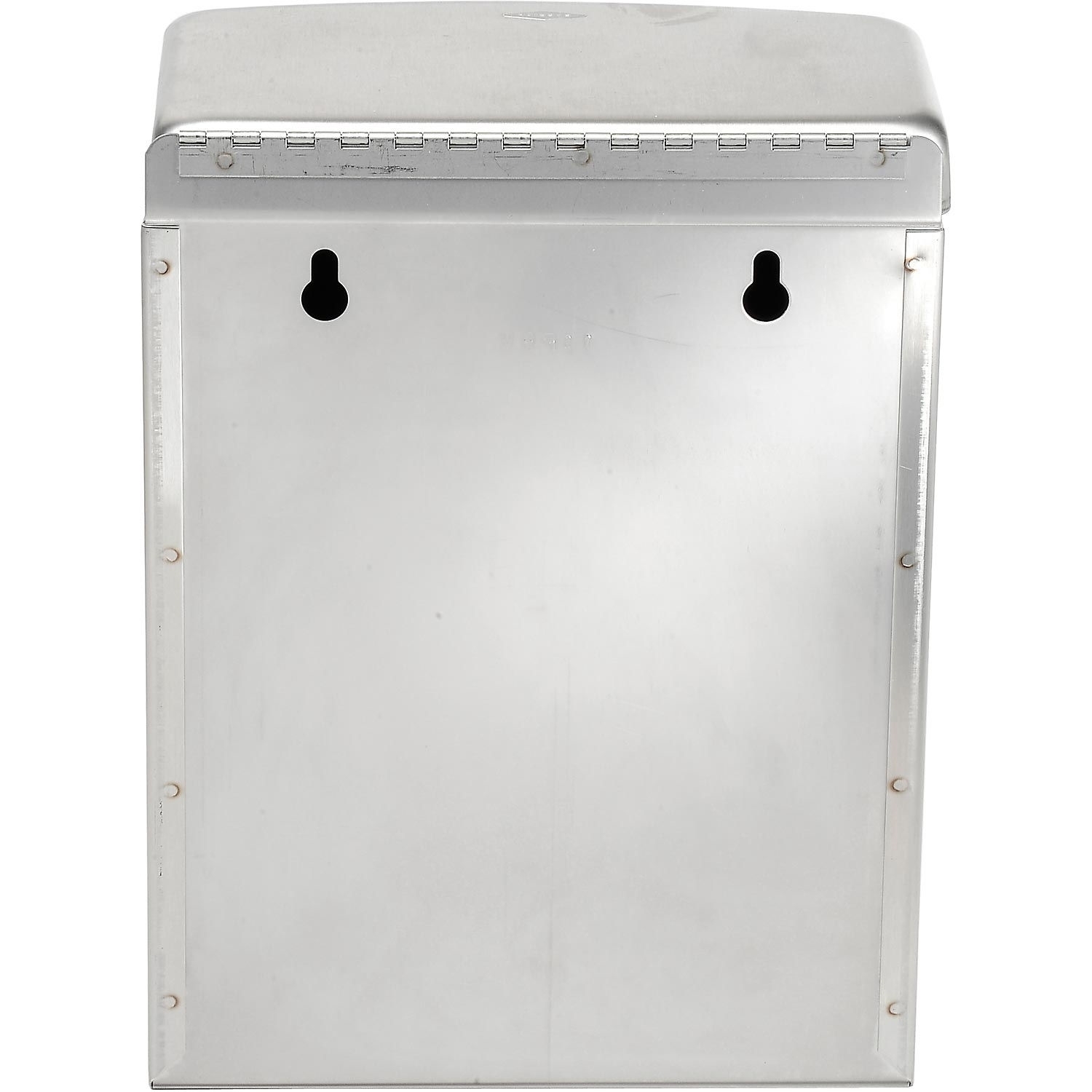 The ConturaSeries® Surface Mounted Sanitary Disposal is practical and goes with any restroom. Constructed of durable, corrosion resistant stainless steel with a satin finish. Drawn, one-piece steel cover is secured to cabinet with full-length stainless steel piano-hinge. Disposal features 1 gallon capacity. Dimensions: 7-1/2"W x 3-13/16"D x 10"H.