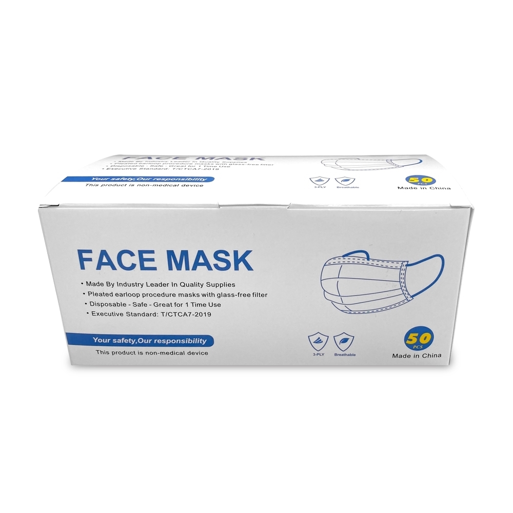 Face Mask, Covering, Disposable , 3-Ply, 50 EA/PK
