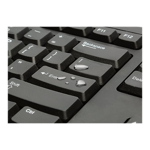 Sealed membrane design makes keyboard liquid-proof. Slim, space-saving profile with 104-key keyboard. Enjoy your favorite drink and type at the same time without fear! Connects to USB port. Wired/Wireless: Wired; Connector/Port/Interface: USB; Keyboard Design: Slim; Ergonomic: No.