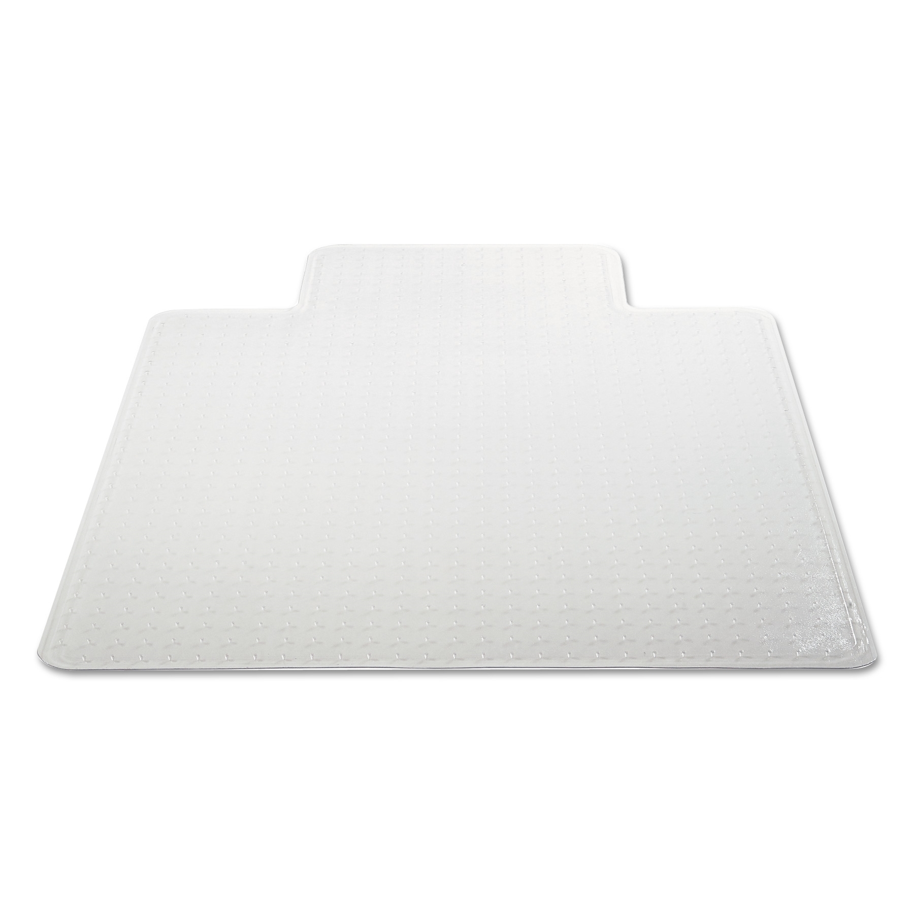 Thinner mat provides a great value while offering economical performance. Lightweight chair mat for occasional use on carpets up to 1/4" thick. Easy-glide rolling surface provides effortless chair movement. Studded design secures mat from moving while protecting carpet from caster wear, spills and heavy traffic. Free and Clear® non-orthophthalate, non-cadmium formula promotes a healthy work environment while offering exceptional clarity and durability. Classic straight edge finish. Mat Type: Chair Mat; Application: Carpet; Width: 36"; Length: 48".