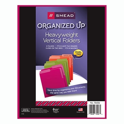 Smead® 75406 Organized Up Heavyweight Vertical File Folders, Assorted Bright Tones, 6/Pack