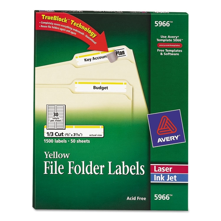 Avery® Permanent File Folder Labels, TrueBlock, Inkjet/Laser, Yellow Border, 1500/Box (AVE5966)