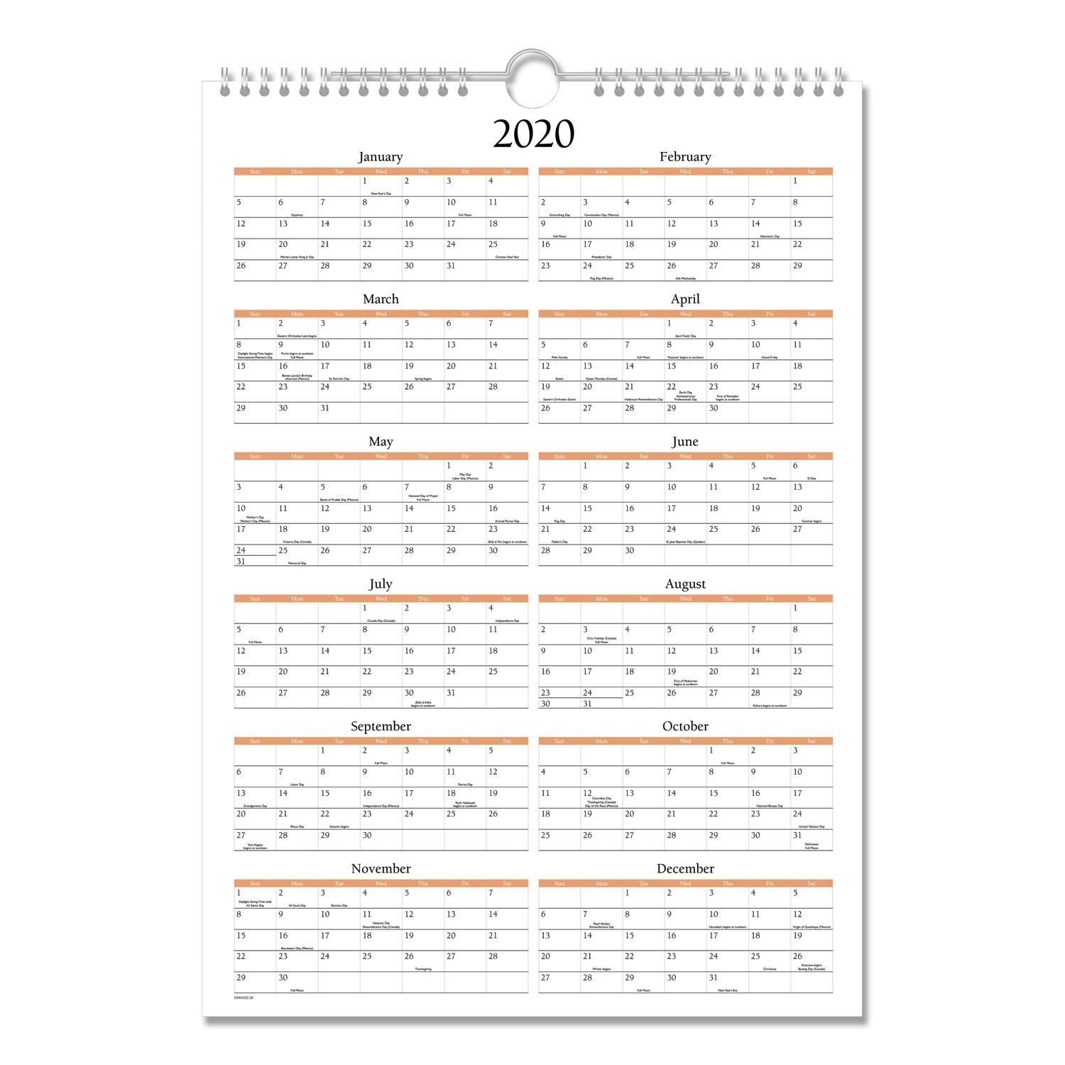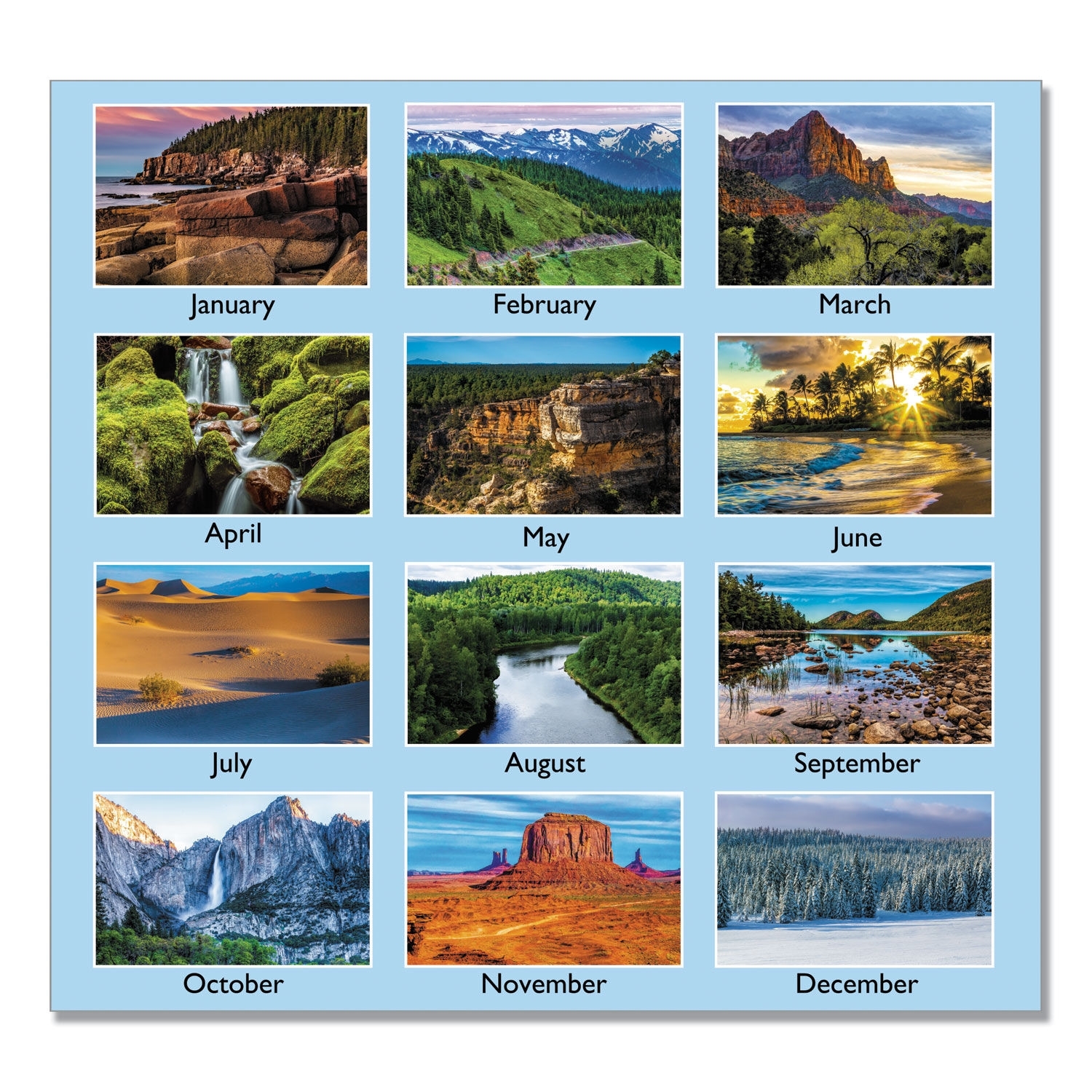 Escape with a stunning scenic image each month. Features full-color photos. One month per page with unruled blocks. Full-year calendar reference; federal holidays highlighted. Bonus page: current year reference calendar. Chipboard backing; white wirebound with hanging loop. Printed on high-quality, recycled paper containing post-consumer recycled material. Size: 12 x 17; Page Color/Theme: Scenic; Edition Year: Current Year; Calendar Term: 12-Month (Jan.-Dec.).