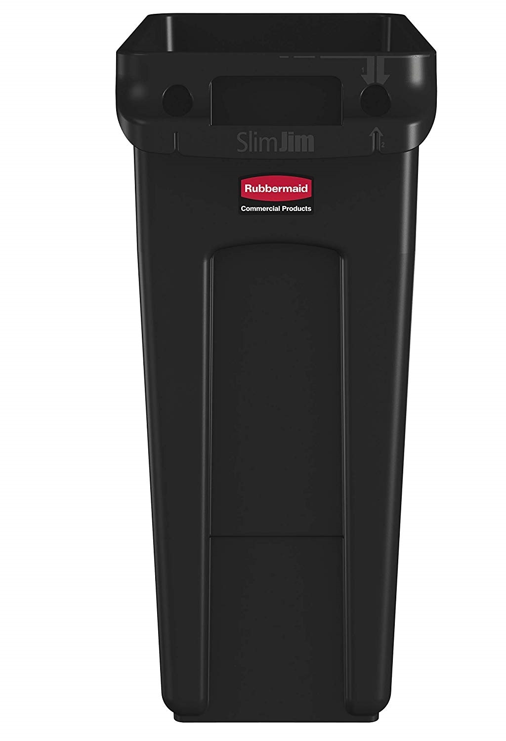 Rubbermaid Slim Jim w/Venting Channels Trash Can, Receptacle, Rectangular, Plastic, 23gal, Black (RCP354060BK)
