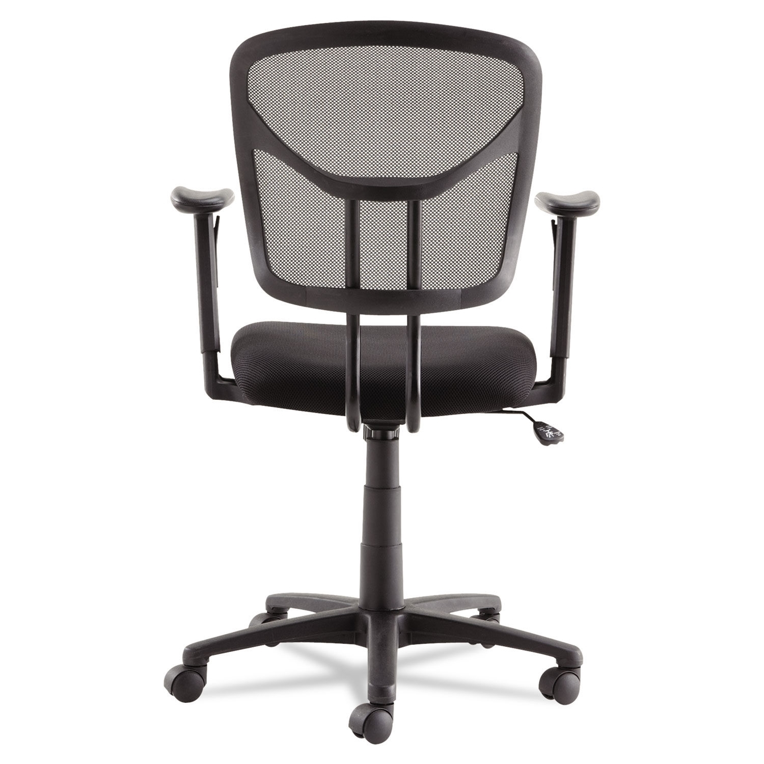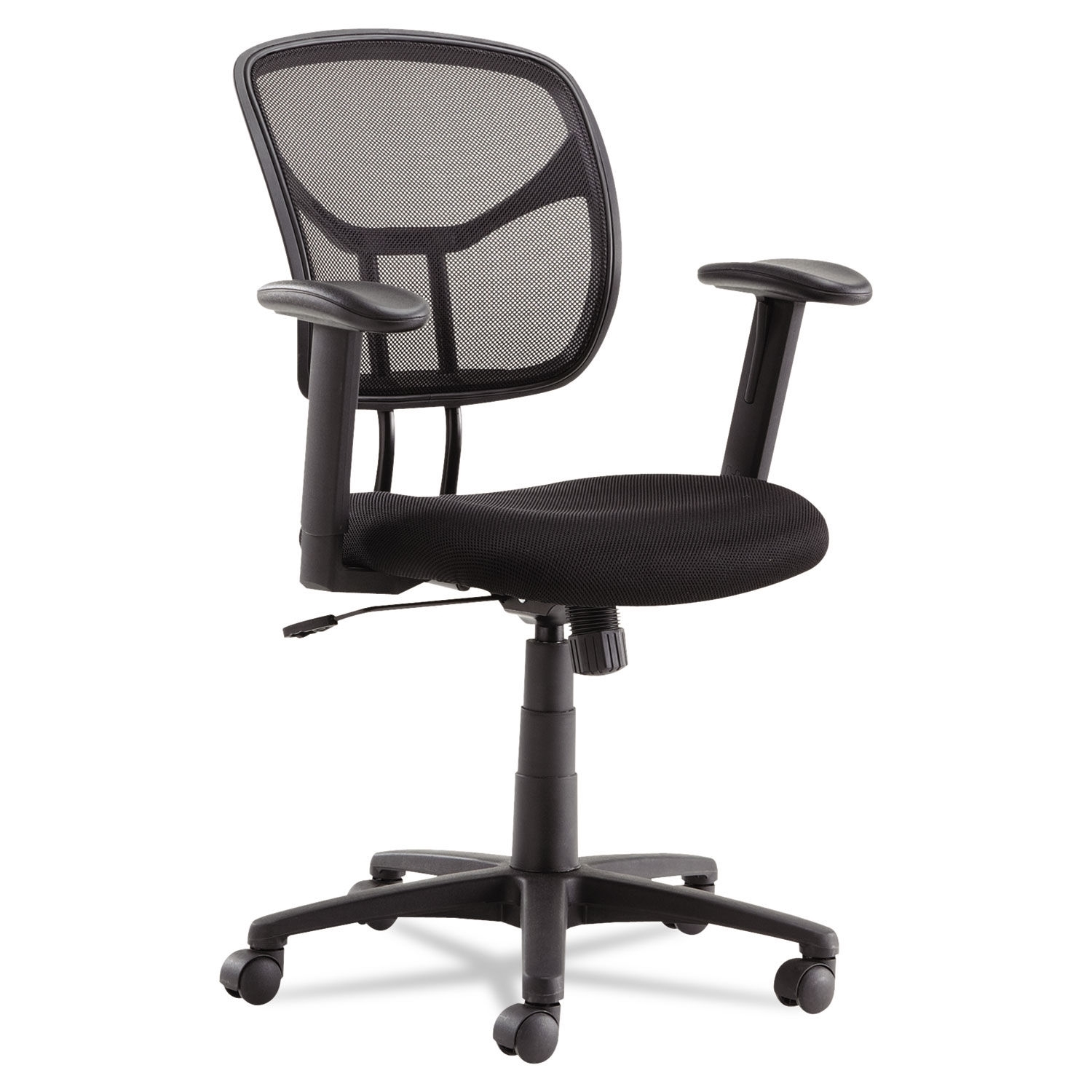 The economical choice for an everyday task chair. Cushioned mesh seat for all-day support. Ergonomic curved mesh back provides breathable comfort. Height adjustable padded arms for optimal arm placement. Recommended Applications: General Office & Task; Seat/Back Color: Black; Arms Included: Yes; Arm Style: T-Bar.